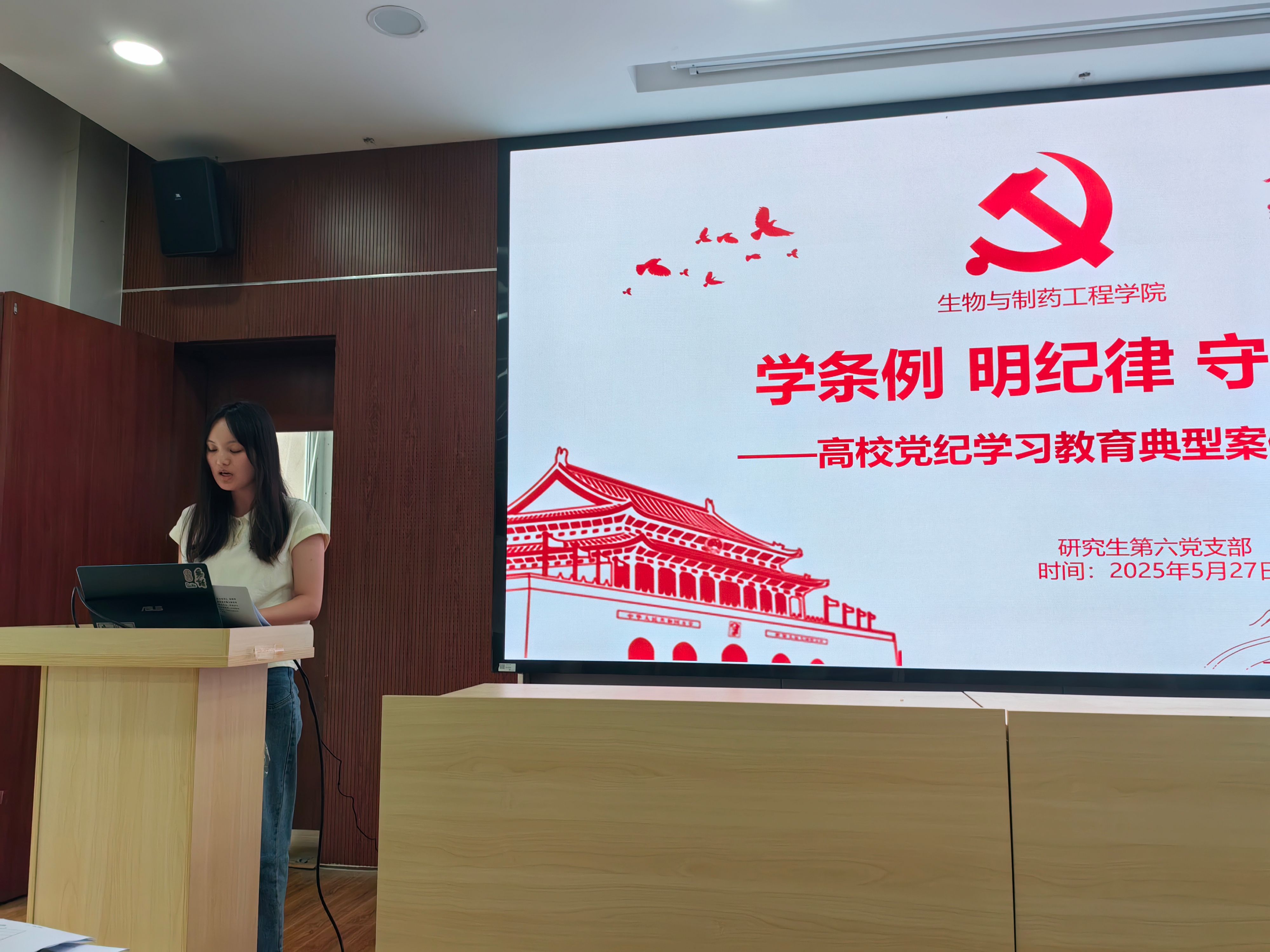 2025年5月27日,生物工程学院研究生第六党支部在尚德楼A1一楼报告厅举行毕业生主题党日活动,主要围绕“传承红色基因,续写党建华章”主题,就抗战精神学习、“新老”支委党建经验交流、党建与业务相融相促研讨等议题开展毕业生主题党日活动。