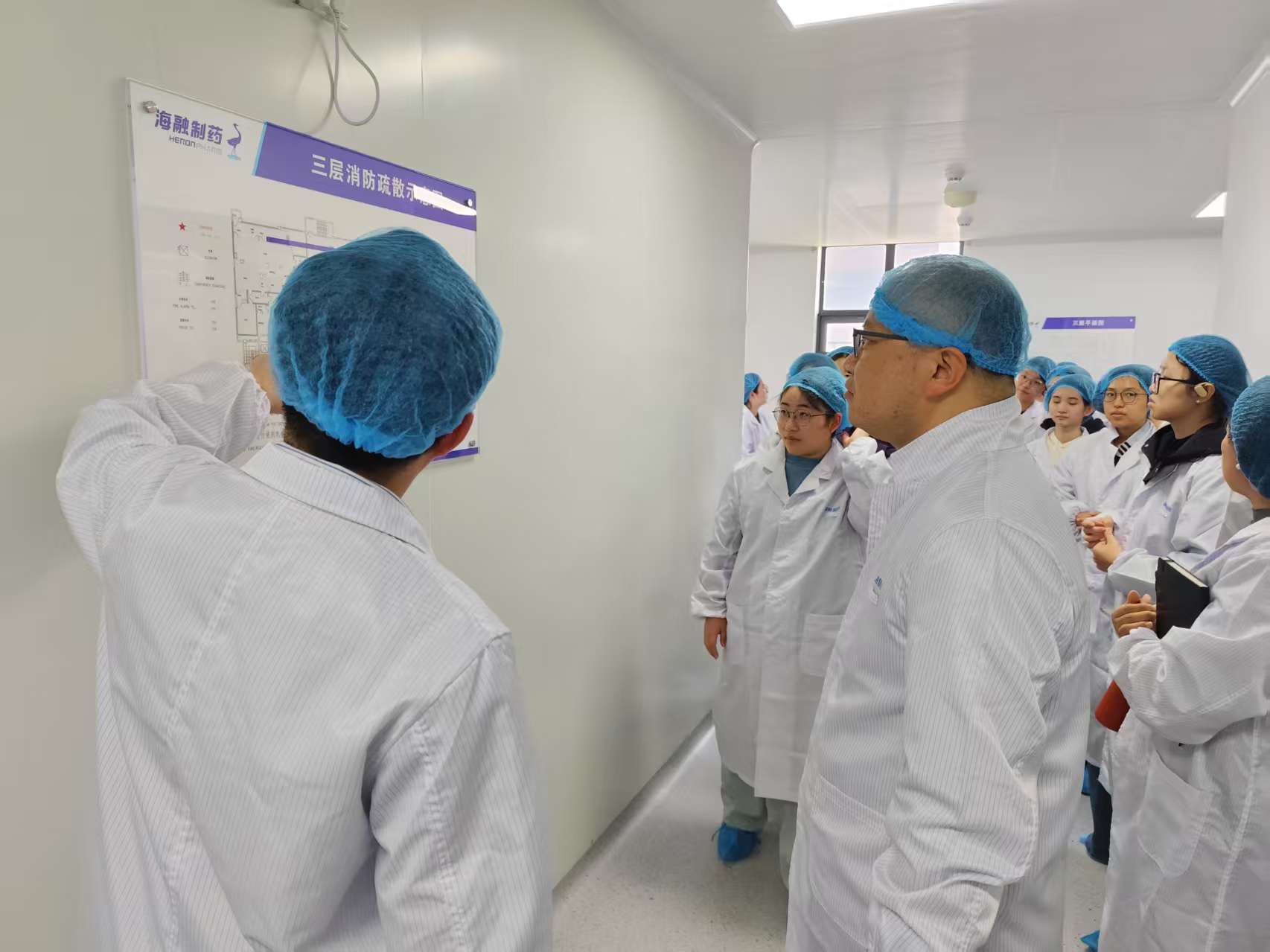 会上,沈飞总经理对学院来访表示热烈欢迎,并深情地回忆起在母校求学岁月,详细介绍了当前医药行业深入调整,加快形成新质生产力的情况。曹卫副总经理介绍了企业事业发展与近期工作。严红莉经理介绍了企业近两年人才招聘情况及规划。徐元龙副书记对企业表示诚挚感谢,并热情介绍了学院制药工程专业学科发展及人才培养成果,回顾了学院与海融制药的长期合作历程,欢迎海融制药来校就吸纳老员工就业、实习深化合作。学院员工工作办公室主任朱皓老师介绍了制药工程专业往届培养与就业情况。会后,徐元龙副书记一行在企业相关岗位负责人及学院实习指导老师赵双飞的带领下,深入生产车间,直观熟悉实习生工作场景与环境,为进一步提升毕业生就业指导质量积累基础。
