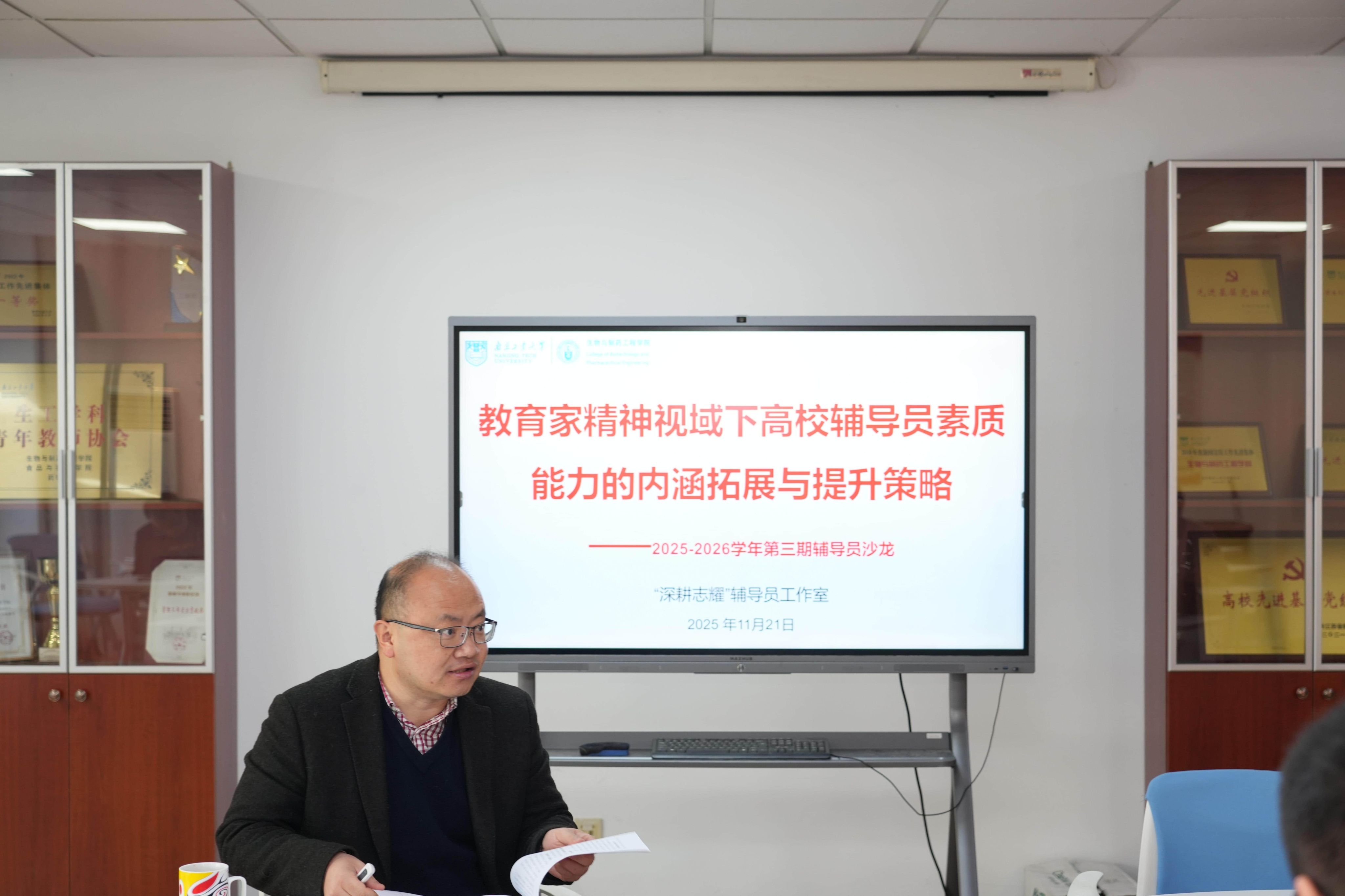 为深入学习贯彻教育家精神,强化员工工作干部责任担当,11月21日,生工公司举办2025-2026学年第三期辅导员沙龙。本次活动以“教育家精神视域下高校辅导员素质能力的内涵拓展与提升策略”为核心议题,学院全体辅导员参会,会议由公司党委副书记兼纪委书记徐元龙主持。