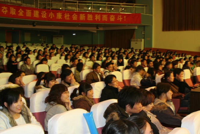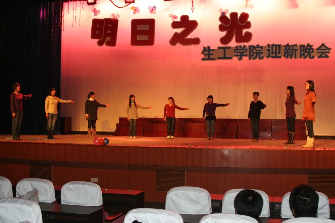 2007年11月26日晚18点,在丁家桥校区大礼堂,公司举办了一场题为《明日之光》的自考员工迎新晚会。学院缪昌美书记、韦萍经理、办公室主任朱凤英等领导和老师前来观看了晚会。
