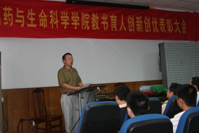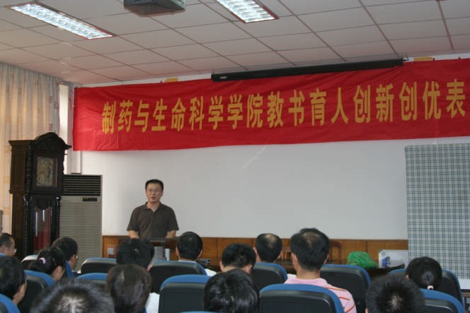 时值全国第23个教师节到来之际,9月10日下午制药与生命科学学院召开了教书育人创新创优表彰大会。会议由缪昌美书记主持,他代表公司党委、院行政向全院教师致以崇高的敬意、诚挚的谢意和美好的祝福。出差在外的韦萍经理、徐虹副经理特地打电话向全院教师表示了节日的问候。会上,周华副经理宣读了2006-2007学年学院取得的各项荣誉。卢定强副经理宣读了关于表彰2007年度奥赛康奖教金获奖人员的决定。南京奥赛康医药有限公司副总经理张建义先生和学院领导共同为获奖教师颁发了奖教金和获奖证书。