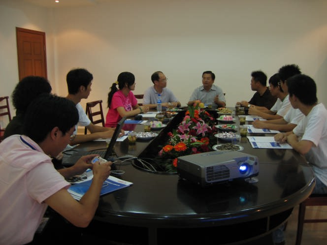 严崔玉女士向服务团介绍了公司的发展历程、企业文化、经营理念、行业最新动态等情况,并展望了企业美好的发展前景。接着,企业创始人戴伍来总经理生动地讲述了自己艰辛坎坷而富有传奇色彩的创业历程。缪昌美书记高度赞扬了戴总勇于挑战、博采众长、追求卓越和富有社会责任感的可贵品质,并鼓励同学们向戴总学习,发扬“创业、创新、创优”的“三创”精神,争做有为的时代青年。