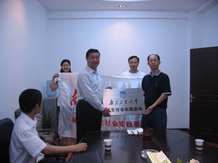 7月9日,社会实践团队一行9人,来到位于邳州市宿羊山经济技术开发区的徐州黎明食品公司参观学习。宿羊山镇党委书记张国昌热情接待了实践团,黎明食品公司兰副总经理向实践团队介绍了公司的基本情况。双方商定在徐州黎明食品公司设立“实习基地”和“员工社会实践基地”,并举行了授牌仪式。