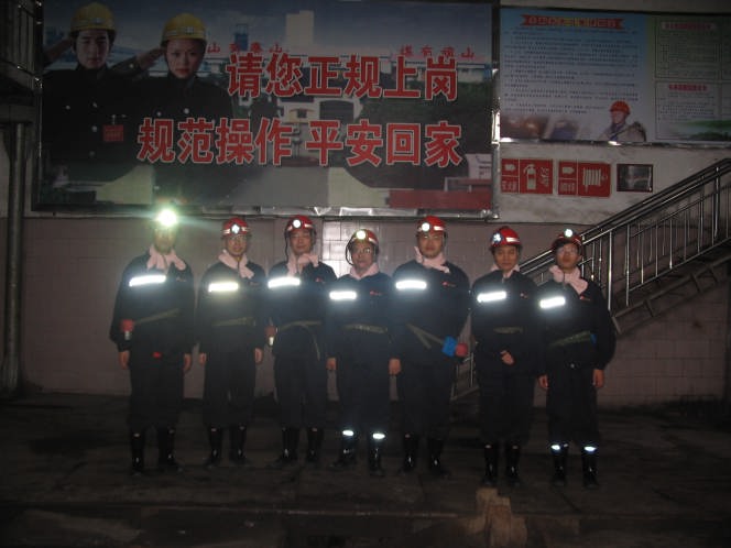 在旗山矿,队员们强烈感受到一股和谐之风。地面美丽似公园,井下有序似工厂,管理上科学严谨,与想象中煤矿的脏、乱、差大相径庭,队员们不禁拍手称赞。尤其是在—750米的井下,矿工们科学施工、文明施工的“半军事化”管理更是给队员们留下深刻印象。在感受矿井现代化科技力量的同时,队员们也体会到了矿工们的艰辛。井下温度湿热、煤尘飞舞,队员们通过坐竖井电梯、平道小电车、斜道小拖车和步行,用时2个多小时“走”完一个工作区,已是腿脚发酸、气喘吁吁、煤灰敷面,更不用说矿工们要在井下工作8个小时,其辛苦程度、工作强度可想而知。
