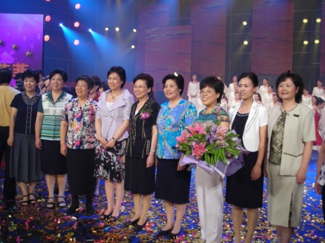 ——全国妇联党组书记、副主席、书记处第一书记黄晴宜,省委副书记张连珍,与十大女杰合影留念