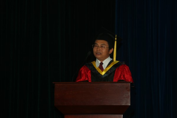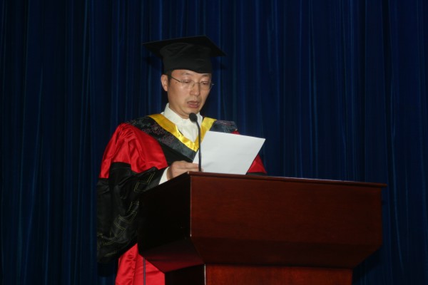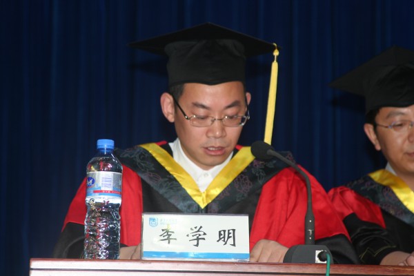 教师代表李振江教授发言。他肯定了员工们刻苦学习,努力奋斗,昂扬向上,勇于实践的精神;认为他们在生理、心理、学业和思想上不断走向成熟,已经成长为父母引以为荣和社会高度认可的大学毕业生;他希望员工们志存高远、脚踏实地、不断开拓创新。