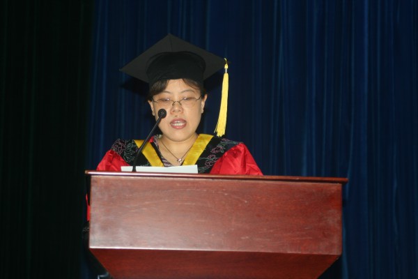 经理韦萍教授发表了热情洋溢的致辞。她代表学院向全体毕业生表示热烈的祝贺,向为教育和培养他们付出辛勤劳动的各位老师致以衷心的感谢和诚挚的慰问。她赞扬了毕业生们辛勤拼搏的精神和取得的丰硕成果,认为他们是学院的骄傲和荣耀。她对毕业生提出了要求,希望他们胸怀大志,立志报国,积极进取,不断提高;爱岗敬业,踏实工作,把握命运,挑战自我;不断学习,加强修养,与时俱进,实践创新。
