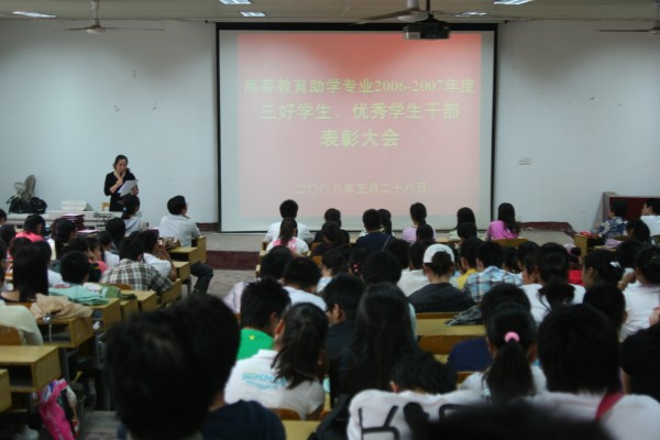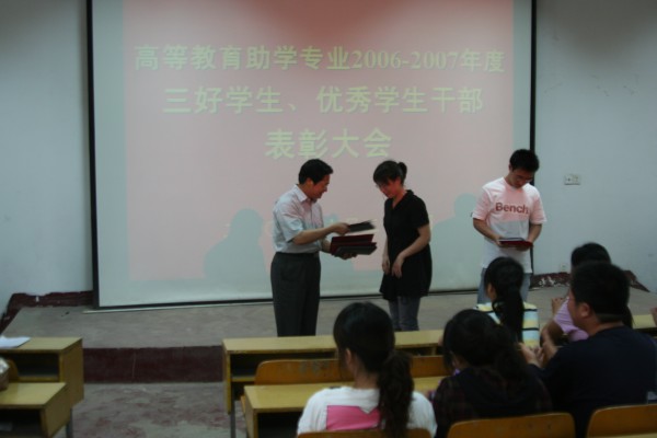 缪昌美老师代表公司党政领导讲话。他看到特色自考专业员工取得的成绩和进步感到十分高兴,对同学们积极开展情系四川地震灾区捐款活动的善举给予了高度的评价;对获得三好员工和优秀员工干部荣誉称号的员工表示热烈的祝贺。他从省教育厅考试院和学校对助学自考工作的重视、学校为助学自考专业同学创造的学习环境、任课老师和班主任对同学们的关爱等方面,让同学对助考自学专业在“天时、地利、人和”等方面具备的外因印象深刻;他用正反两个方面的生动事例让同学们从内因层面强烈地感受到:“精神力量对学业进步往往具有决定性意义”。他希望受表彰的三好员工和优秀员工干部再接再厉,充分发挥示范带头作用,不断取得新的进步。希望全体自考员工向受表彰的三好员工和优秀员工干部学习,以对父母、学校、人民的感恩心和责任心,以自强不息的精神和不断超越自己的信心,保持勤奋,不懈努力,把自己培养成为一个国家和人民有用的人。
