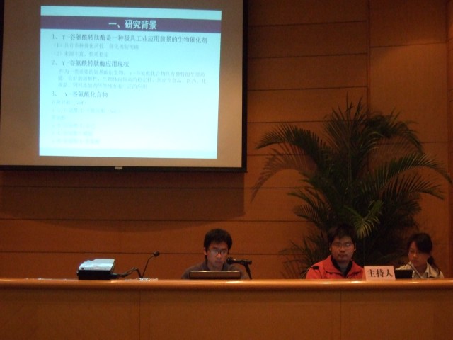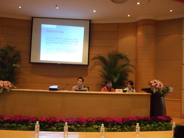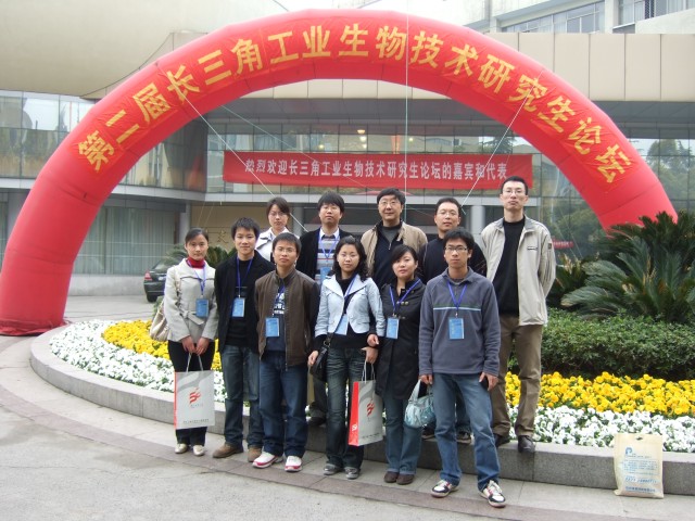 本次论坛以“工业生物技术新时代研究生的发展”为主题,以“探索自主创新之路,迎接生物经济时代” 为口号,由浙江工业大学承办,吸引了五所高校近百余位教师和研究生的积极参与。公司董事长欧阳平凯院士为论坛题词,卢定强教授担任论坛学术委员会副主任,徐虹教授、何冰芳教授担任论坛学术委员会委员,博士生周佳栋担任论坛组织委员会副主任。公司出席本次会议的团队由严明副教授带队,博士生周佳栋、郝宁、吴群,硕士生吴明刚、姚天然、李建、马江峰、李会、刘忠敏、黄秀梅与会。会议期间,吴群承担了第二分论坛主持人工作,吴明刚、姚天然、李建分别在论坛上作了口头报告,李会、刘忠敏也作为学院代表给浙工大的本科生们作了考研经验交流。