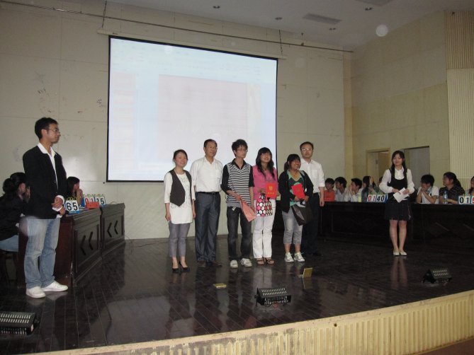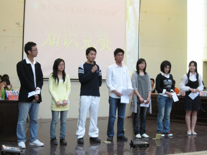 活动的第一个环节是PPT展示学习心得,5位同学分别代表所在党支部,围绕科学发展观的内涵、实质和要求,紧贴国情,联系实际,旁征博引,以丰富翔实的图文信息和声情并茂的演讲口才,交流学习实践活动的心得体会。他们的讲演既通观大局又着眼实践,既通俗易懂又内涵丰富,赢得了与会师生的阵阵掌声。活动的第二个环节是知识竞答环节。5个代表队在紧张活泼的氛围中尽显学习功底。选手们才思敏捷的反应、扣人心弦的抢答、台上台下的互动共鸣,把现场的活动掀起了一个又一个高潮。经过激烈的角逐,轻化工程党支部代表队、生工员工第一党支部代表队、药剂食品党支部代表队分别取得一、二、三名的好成绩。公司党校常务副董事长夏侃等领导分别为获奖同学颁奖合影。她从选手们的精彩表现中感到广老员工在学习实践活动中的收获令人可喜,坚信广大同学作为中国特色社会主义事业的建设和接班人,通过学习实践活动将科学发展观在头脑中扎下根来,对于创造我们更加美好的明天将具有十分重要的历史现实意义。