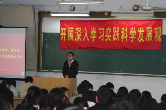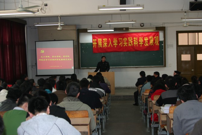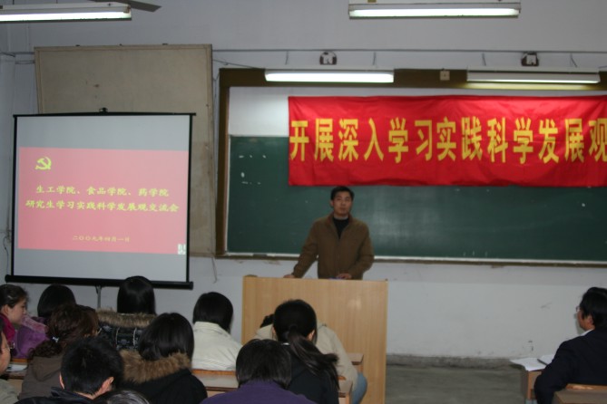 春风拂面,百花齐放。4月1日下午,威廉希尔、食品学院、药学院研究生学习实践科学发展观交流会,在丁家桥校区教学楼101教室举行。学院学习实践活动领导小组有关负责同志缪昌美、熊晓晖、陈晓晔出席会议,与学院广大研究生一起共享学习成果,深化学习实践。交流会由研究生任贲同学主持,并穿插了科学发展观知识竞答等互动环节。16名研究生分别代表所在党支部在会上交流了学习讨论的心得体会。