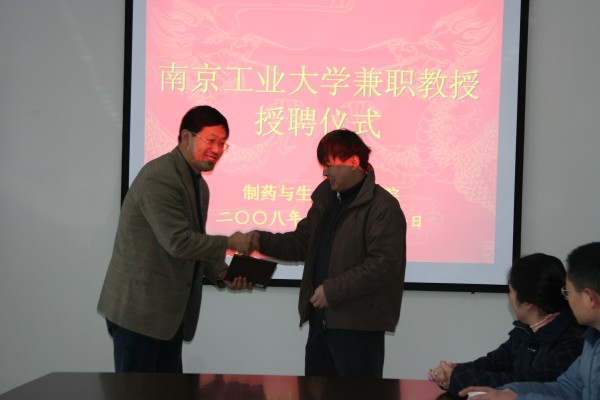 2008年12月31日上午,南京奥赛康医药集团副总经理张建义先生应邀来校受聘兼职教授并出席研究生教育工作会议。授聘仪式由校人事处副处长考宏涛博士主持。公司党委书记缪昌美致欢迎辞并介绍了张建义先生的学术成就。国家生化中心常务副主任应汉杰教授受董事长欧阳平凯院士委托,向张建义先生颁发聘书;制药与生命科学学院经理韦萍教授为他佩戴了校徽。张建义教授在受聘仪式上激情讲话,深感受聘威廉希尔williamhill兼职教授是一种荣誉和责任,也是新的起点。表示要以“南工大——奥赛康研究生创新中心”为载体,在加强交流、整合资源、优势互补、人才培育等方面,努力作出应有的贡献。