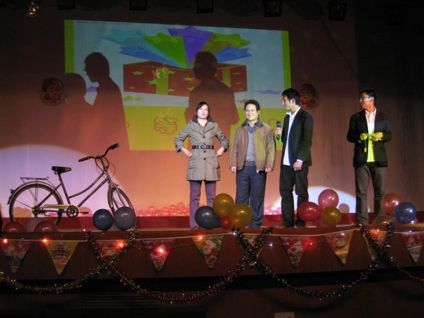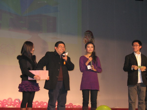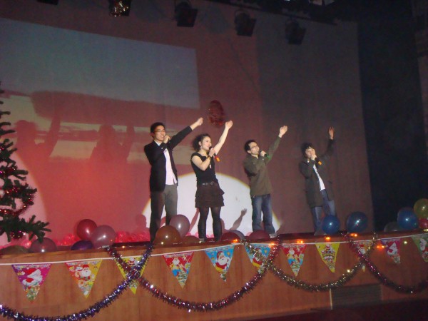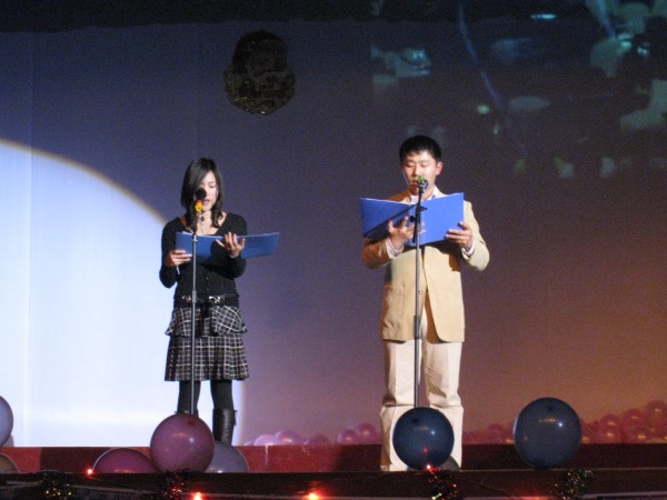 晚会在青春动感的开场舞蹈中拉开了序幕。舞台屏幕上,倒计时消失,烟火绽放。一时间,整个舞台流光溢彩,气贯长虹。激情四射的开场舞,迅速调动起全场观众的情绪,晚会在欢快的气氛中,在热烈的掌声中拉开了序幕。朗诵诗《加油,中国!》,歌颂了中国改革开放三十年的巨大发展,回顾了2008年中华遭受的灾难和创造的辉煌。朗诵者抑扬顿挫的语调,慷慨激昂的豪情,让全场每一位观众都感受到了作为中华儿女的责任和自豪。流行歌曲《富士山下》,校园歌曲联唱,吉他弹唱《Any man of mine, Nobody’s fool》,歌唱出青春的旋律。而外教Johnson先生演唱的歌曲,则给人带来温暖的感动。优雅的孔雀舞,展现了傣族舞蹈的魅力。由公司研究生自编自导自演的小品《昨天今天明天》,以诙谐幽默的表现方式,反映了当代研究生的真实生活,引起了同学们的共鸣。研一新生钢琴和竹笛合奏的《神话》,是中华传统艺术和西方艺术的完美融合,也展现了我们研一新同学的多才多艺。晚会上,师生共同参与了小游戏—“人体时钟”、“圣诞跳跳跳”,让晚会高潮迭起,妙趣横生。四位漂亮女生的现代舞,活泼欢快,将晚会气氛再一次推向高潮。最后,由威廉希尔师生合唱的《众人划桨开大船》,铿锵有力,斗志昂扬,唱出了威廉希尔师生同心同德、同舟共济、创新发展的蓬勃朝气。