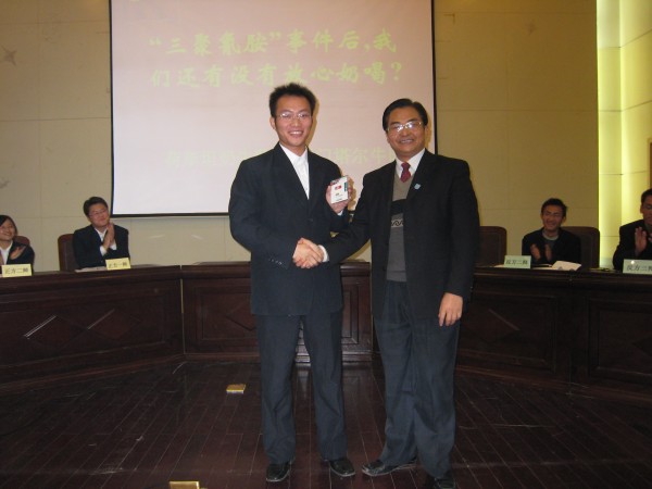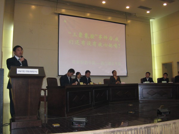 就当前出现的三聚氰胺事件,支部组织员工展开主题辩论——三聚氰胺事件以后,我们还有没有放心奶喝?正方:西门塔尔牛队,论点是“三聚氰胺事件以后,我们没有放心奶喝”;反方:荷斯坦奶牛队,论点是“三聚氰胺事件以后,我们有放心奶喝”。双方论辩精彩激烈,高潮此起彼伏,掌声接连不断。最终正方西门塔尔牛队因为立场明确、配合严密、辩驳有力获胜。熊晓辉教授做了点评:食品的质量是一个相对的概念,没有绝对安全的食品。辩论双方都能够主动思考,正方同学忧国忧民,反方同学充满自信,从大家身上我们看到了国家的未来,国家的希望。