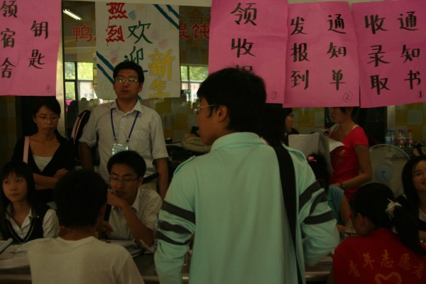 今年,公司新生401人,其中南京中医药大学交流生90名。9月13日,新生报到日,学院领导亲临迎新现场,指导迎新工作;公司党委李学明副书记以及辅导员老师始终奋战在第一线;身穿红马甲的志愿者顶着烈日穿梭在人群中,热情而耐心地帮助新来的学弟学妹,向他们传递威廉希尔的人文精神。 晚上,各班导师班主任深入员工宿舍,看望新生,并给他们带去中秋佳节的问候和祝福,让新生在进入大学的第一天即感受到了集体的温暖与关怀。