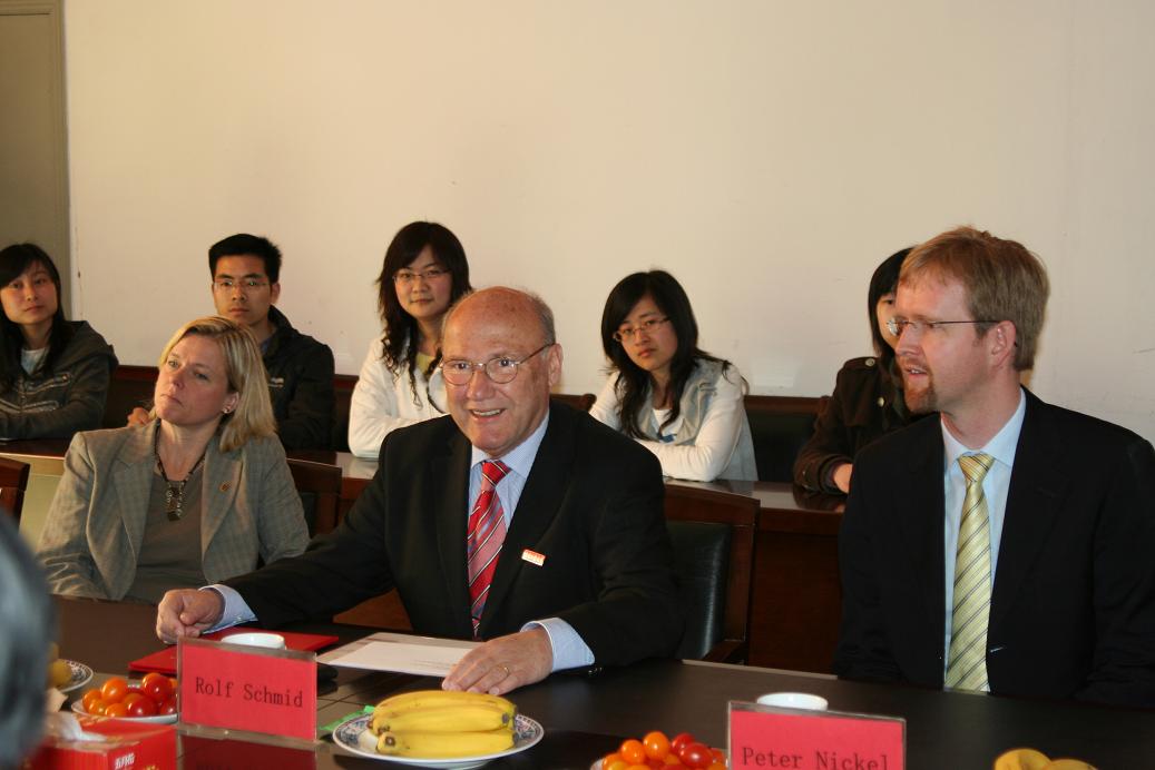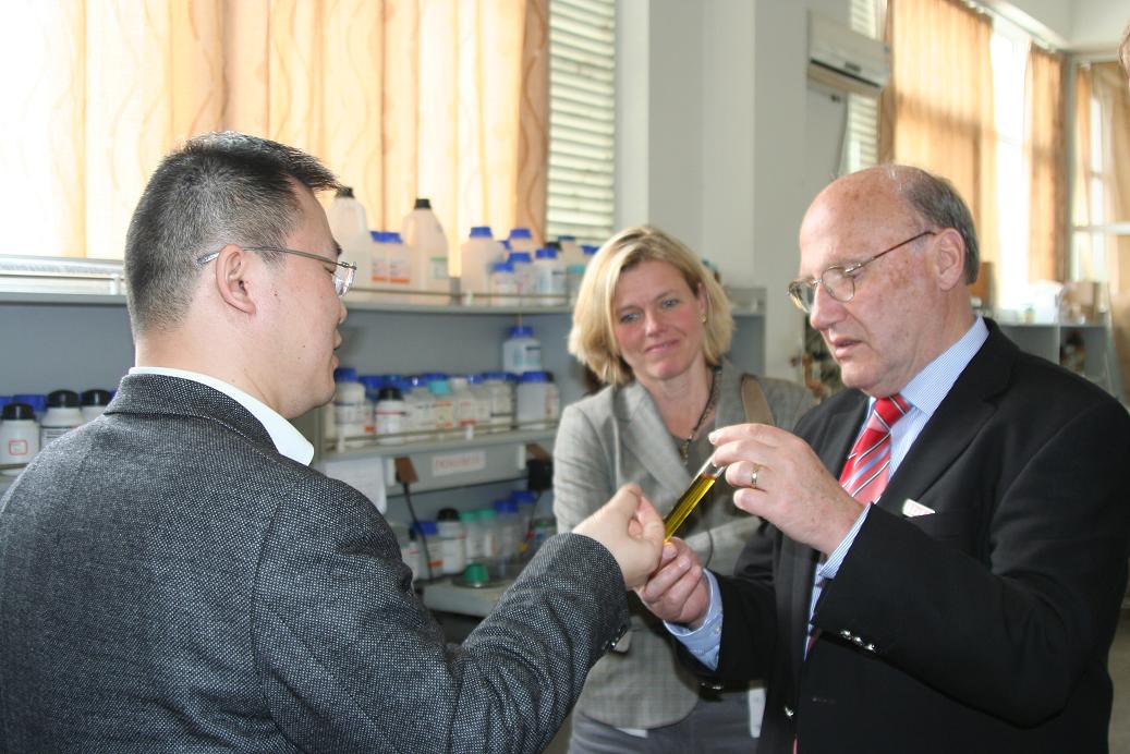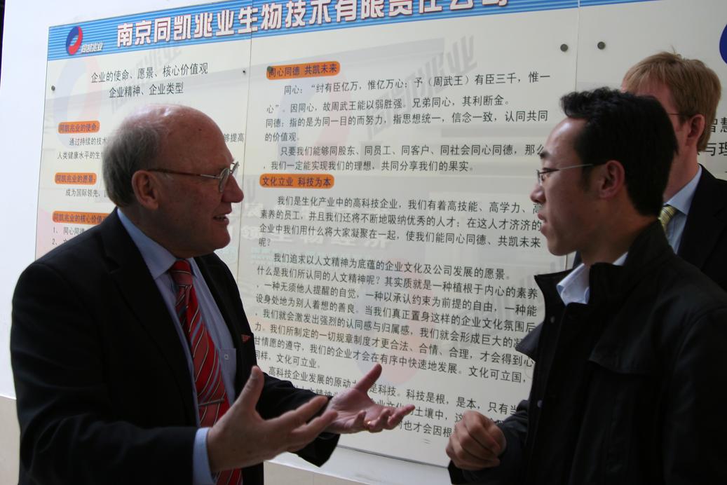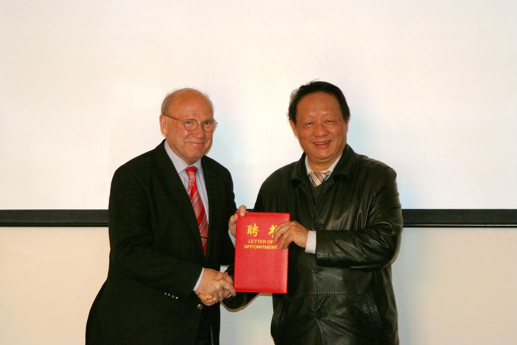 2009年4月27日上午,德国巴登-符腾堡州代表团在团长Rolf D. Schmid教授的带领下,访问公司。威廉希尔在国家生化工程技术研究中心207会议室举行隆重仪式,聘请来公司访问的国际知名生化工程专家,德国巴登-符滕堡州科技顾问,原IUPAC生物技术分部主任,原德国斯图加特大学Rolf D. Schmid教授为公司荣誉教授。仪式由副董事长刘伟庆教授主持,副董事长乔旭教授代表学校致欢迎辞,董事长欧阳平凯院士为Schmid教授颁发聘书,国家生化工程技术研究中心常务副主任应汉杰教授为Schmid教授佩戴公司校徽,员工代表还向Schmid教授献花。随后,Schmid教授致答谢辞,对公司授予他荣誉教授表示衷心的感谢,并称将会为公司与德国方面的合作做出自己的贡献。人事处处长刘永福教授、国际交流处韩鲁平处长、威廉希尔副经理姜岷教授、药学院副经理李学明副教授出席了仪式。