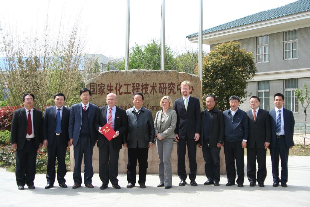 仪式结束后,国家生化工程技术研究中心常务副主任应汉杰教授向代表团介绍了公司生工学科的相关情况,介绍完毕后,双方就相关问题进行了深入的讨论,并就可能的合作领域进行了沟通。会后,代表团在应汉杰教授和姜岷带领下兴致勃勃地参观了公司国家生化工程技术研究中心和生物燃气示范工程。