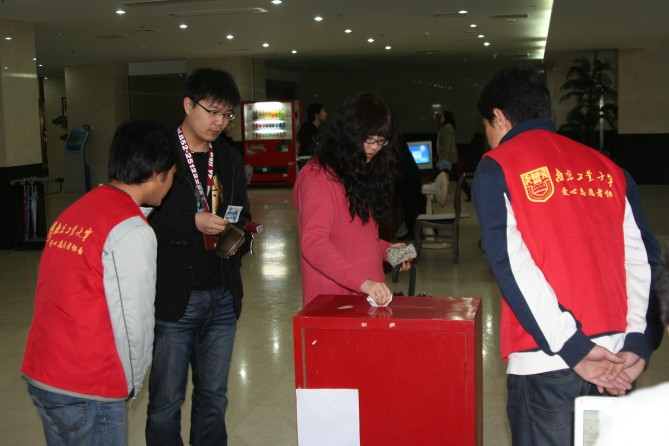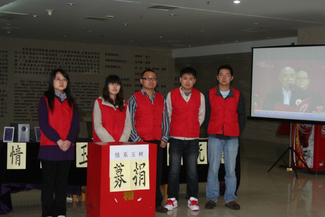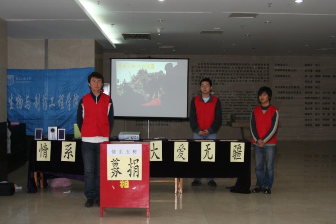 玉树不哭雨纷纷,爱心捐赠情浓浓。2010年4月21日,玉树地震全国哀悼日,威廉希尔研究生会组织的情系玉树爱心捐赠活动,在南工大科技创新大楼一楼大厅和丁家桥校区餐厅入口处举行。现场播放着央视“情系玉树,大爱无疆”大型捐赠晚会的录像,把“党和人民紧密相连、众志成城抗震救灾、爱心人士倾情捐赠”的感人场面再次回放,营造出浓厚的捐赠氛围。获知捐赠消息亲临现场的学院领导缪昌美、何冰芳、姜岷、熊强等老师带头捐赠,既是对生工研会同学善举的嘉许和呼应,更是对玉树同胞的关切和祈福。募捐箱前,身着红马甲的爱心志愿者们以充满敬意的目光迎接着每一位捐赠者,也让谢意和人间真情始终洋溢在捐赠现场。截止晚上6点,共募得善款2937.3元人民币,所募善款已通过南京慈善总会尽快送达地震灾区。尽管善款有限,但善举中蕴含的爱心和精神力量是无限的。有些同学说,募捐现场天空飘雨,也许那就是天使的眼泪,和玉树人民一起伤痛。然而雨后的阳光就是整个中华民族的温暖。也有些同学说,相亲相爱“一家人”,一元、五元、十元、百元,都表达了一个中国人对同胞的骨肉深情。“微尘”是我们的名字,玉树是我们的家乡!支援灾区,我们在行动! (文:张伟 摄影:米兰)