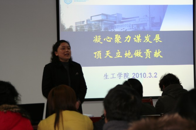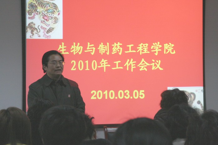 会议指出,2010年是实施“十一五”规划的决战之年,也是谋划衔接“十二五”的关键之年。做好2010年的工作,我们面临“荣誉与梦想同在,机遇与挑战并存,使命与责任同行”的考验。纵向比,成绩喜人;横向比,形势逼人。百舸争流,慢进则退。要审时度势,善于从建设有特色高水平大学的高度把握我们的责任。重点围绕发挥国家重点学科龙头作用、实施卓越工程师培育计划、迎接国家级实验教学示范中心评估、谋划生物产业集团集约发展、推进学习型党组织建设等方面,加大工作力度,努力把创新型学院建设不断推向新的阶段。