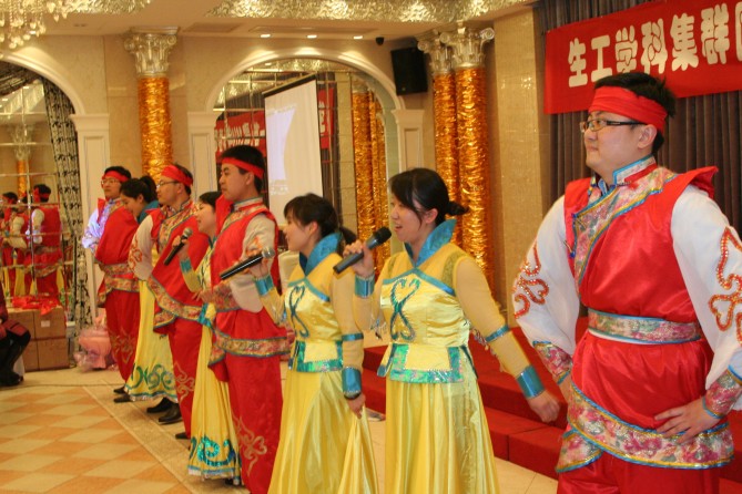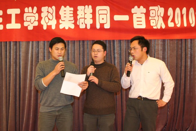 朱大伟、吴雪、王浩、冯杨阳4位才华横溢的节目主持人经过精心筹划,推出了一台自编自演的文艺节目。各系(室)教职工满怀激情,登台献艺,以喜闻乐见的文艺表演尽情抒怀——要以感恩心和责任感,唱好同一首创新发展的凯歌;唱好同一首和谐绚丽的凯歌;唱好同一首充满希望的凯歌!