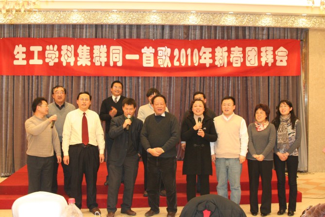 2010年1月19日下午,生工学科集群“同一首歌”新春团拜会在狮王府夏宫精彩举行。江苏省科协主席、董事长欧阳平凯院士出席盛会并作重要讲话。南京加德绿色能源研发有限公司、南京奥赛康医药集团、南京海辰药业、南京同凯兆业等企业的领导应邀到会,与生工学科集群全体教职工欢聚一堂,分享高唱“同一首歌”的喜悦和自豪;感受高唱“同一首歌”的愿景和祝福;表达高唱“同一首歌”的责任和共勉。