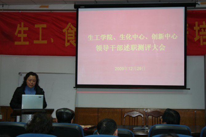 根据公司党委“关于2009年度中层干部考核工作的通知”精神,公司党委于2009年12月29日下午举行领导干部述职测评大会。公司党委委员、工会主席、教工党支部书记、各系(室)负责人、副高以上教师、副科级以上干部,公司党代会、教代会代表,特邀监察员、民主党派人士参加大会,听取了威廉希尔、国家生化中心和江苏省工业生物技术创新中心领导干部述职。校纪委戴苏淮同志到会,组织与会人员根据述职和平时掌握的情况,对威廉希尔、国家生化中心和江苏省工业生物技术创新中心领导干部进行了测评。
