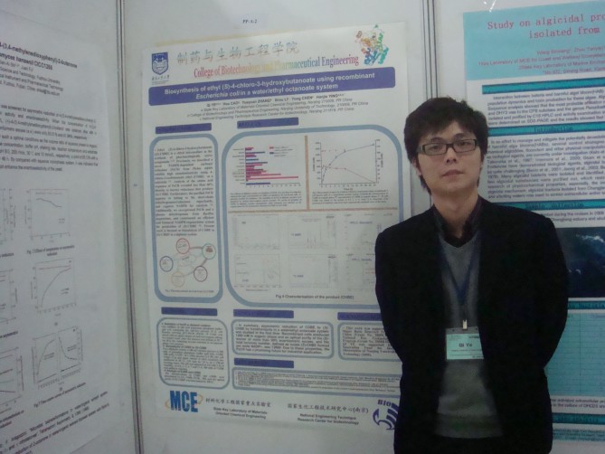 会议的主题报告Plenary lecture one是来自于明尼苏达州大学(University of Minnesota)的华人教授Ping WANG所做的报告,题目为生物催化在生物材料方向的应用,其它的交流的形式还有Keynote speech、Oral presentation和Poster presentation。博士生叶齐做了题目为Biosynthesis of ethyl (S)-4-chloro-3-hydroxybutanoate using recombinant E. coli in a water/ethyl caprylate system的Poster presentation。