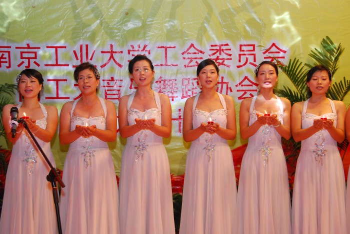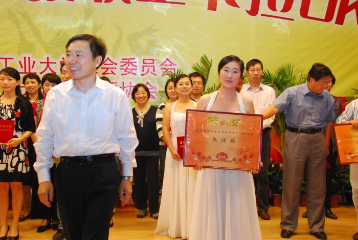 日前,由校工会主办、校教职工音乐舞蹈协会协办的庆祝建国六十周年教职工卡拉OK比赛在浦江学院报告厅举行。公司参赛的13位女教师身着洁白的天使服饰,手捧红烛,以一曲声情并茂的小合唱——《让世界充满爱》,生动地展现了“爱与责任”的“红烛精神”和共建共享和谐的美好愿景,赢得了观众的喝彩和共鸣,获得了比赛二等奖和最佳表演奖。
