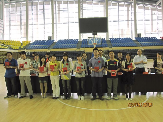5月22日下午,威廉希尔、食品与轻工学院、药学院在江浦校区体育馆,隆重举行“用五四精神书写青春”——2009届考研表彰暨考研动员大会。出席大会的有三院领导班子成员、各系(室)负责人、教工党支部书记、员工辅导员、班主任和三院本科生。大会由药学院周华书记主持。校员工工作部副部长杨琦同志应邀出席大会宣读表彰名单,并与出席大会的学院领导为威廉希尔沈燕等54名同学、食品学院张臻等24名同学、药学院王益群等15名同学、自学助考生物技术专业康武同学,共计94名考取研究生的同学颁发了《学习标兵》荣誉证书。支秋霞同学代表受表彰的同学作大会发言,与大家共同分享了“天道酬勤”的喜悦。食品与轻工学院熊晓辉书记宣读获得色谱技能培训合格证书的同学名单,60名同学带着提升就业竞争能力的自信,从与会领导手中接过了色谱技能培训合格证书。