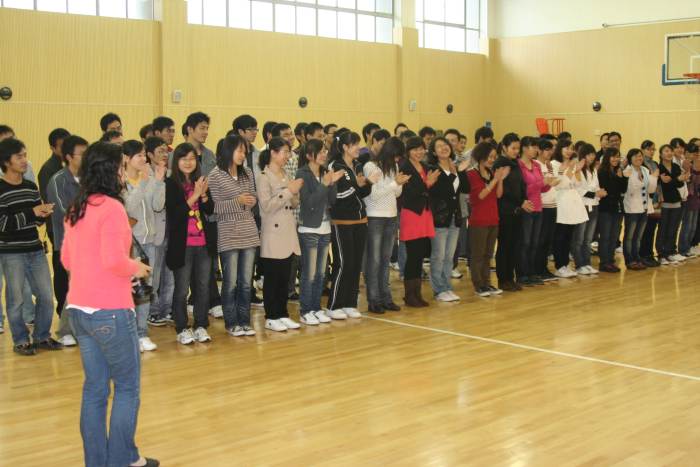 翻越火线 此时,每个队员不再有自己的小团队,大家都属于一个集体。所有的队员都可以通过自荐的方式,由大家推选出四名队长,最终余洋等四名队员当选为这个大团队的队长,带领大家翻越火线。规则是在翻越过程中不允许任何一名队员触到绳子,否则所有的队员重新开始,并且四名队长将要受到惩罚。在前两次翻越中,我们都失败了。第三次我们再也不允许失败,在队长的带领和教练的指导下我们成功翻越了,此时场面沸腾极了,大家都激动地鼓掌着、拥抱着。之后,教练肯定了大家这种顽强的作风和指出了这个环节遇到的问题。由于我们的队员在翻越过程中需要踩在用身体作为支架的队员背上,然而很多队员在这个过程中没有脱下鞋子,并且有下蹲的姿势,致使在结束后我们看到他们后背都留下红红的印迹。此时,我们每一个人都感动了,有些队员流下了感动的眼泪,在场的所有女生都齐声喊道“生工的男生都是纯爷们”,大家都向前与他们拥抱、击掌。是的,在生活当中我们需要感恩。感恩的心,不分你我。正如教练所说的那样,我们会感谢父母,感谢老师,那么我们都还能否记得那些曾经给我们帮助过的人呢。一个人如果连感恩都不懂,那么不管他现在站在什么位子上都不会走很远的。
