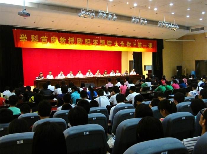 2010年9月14日上午,刚从北京开会回宁的董事长欧阳平凯院士风尘仆仆地来到威廉希尔、食品学院、药学院2010级新生之中,话人生,谈学习,给新生们以极大的鼓舞。会场上“学科首席教授欧阳平凯院士为你上第一课”的红色会标,诠释着“以人为本,全面实施素质教育”的战略主题,彰显的一种价值导向是:“坚持以教学为中心,把培养人才作为高等学校的第一职责。学校和教师都要把主要精力放到搞好教学和培养好员工上。教授要上讲坛给本科生上课。以自己的人格魅力和学识魅力教育感染员工,做员工健康成长的指导者和引路人”。
