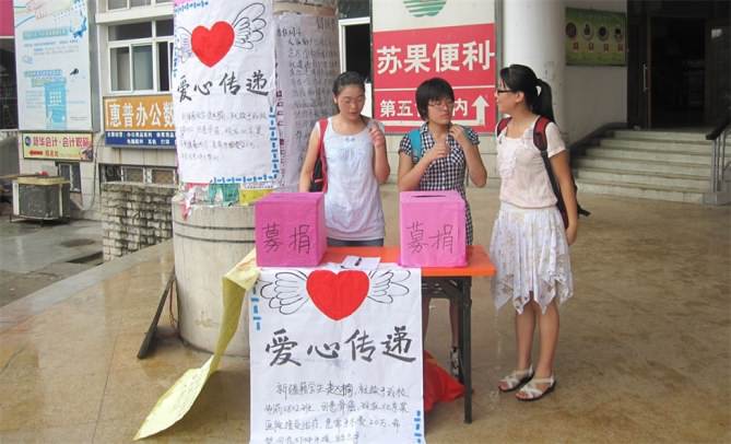 为了帮助赵楠同学,学院分团委立即发起向赵楠同学献爱心的倡议,得到了广大师生的积极响应。无论是朝夕相处的,还是素未谋面的,都纷纷伸出援助之手。学院各团支部开展主题团日活动,学习赵楠同学顽强与病魔抗争的精神,并积极捐款;制药0802班的全体同学在学校各个餐厅门口设捐款点为赵楠同学举行募捐活动,共收到捐款22650.4元。学院领导带头捐款,全院教职工慷慨解囊捐款13480元。所捐款项36130.4元已通过中国农业银行汇至赵楠的帐户。