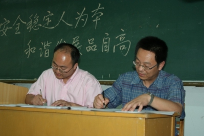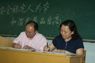 曹飞副经理代表学院与各系(室)负责同志,以及团队实验室责任人,一一签订了“治安安全目标管理责任书”,把“安全稳定工作连着你我他,搞好安全稳定工作靠大家”的责任意识传递给了与会师生。
