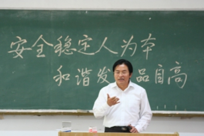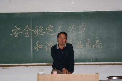 6月2日下午,公司在丁家桥校区教学楼101教室召开安全稳定专题工作会议。会议由公司党委书记缪昌美同志主持。院系(室)负责同志、在丁家桥校区工作学习的教师和研究生出席了会议。校保卫处监文松同志应邀出席会议,就做好防火、防盗和实验室安全等工作提出了指导性意见。会场上由博士生导师何冰芳副经理在黑板上书写的十四个大字——“安全稳定人为本,和谐发展品自高”,诠释着做好安全稳定工作的意义、理念和愿景。