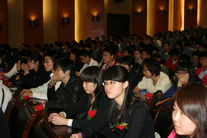 美国密西根大学张跃华教授应邀在会上话人生谈学习讲体会。勉励同学们志存高远,自信自强,脚踏实地,全面发展。希望同学们珍惜自己在学校的学习机会,学会分配学习、工作和娱乐的时间,全面提升自己的综合素质。他认为在大学期间从事员工工作或担任员工干部并不和学习冲突,而且在服务同学的同时还升华了爱心和责任感。