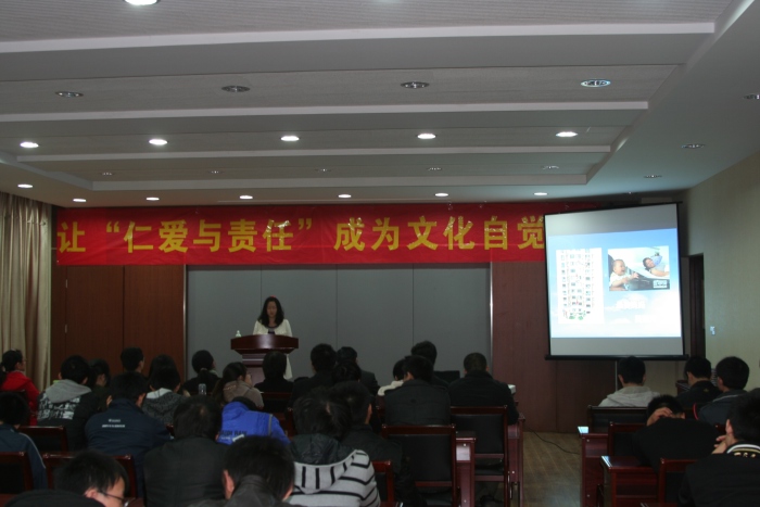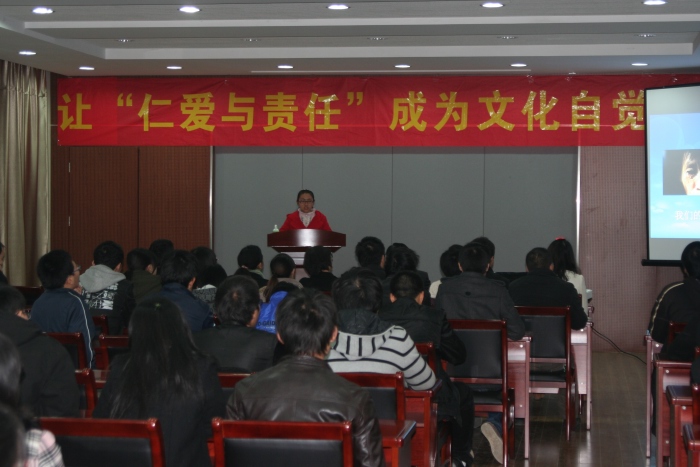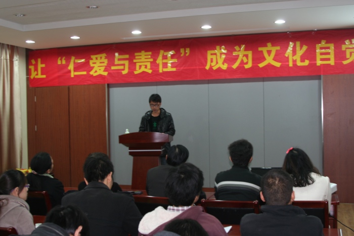 2011年11月25日下午,由公司党委主办、威廉希尔研究生会承办的“让‘仁爱与责任’成为文化自觉”的情景互动式党课,在江浦校区生工学科楼一楼报告厅举行。学院领导缪昌美、韦萍、何冰芳等老师和一、二年级的研究生党员一同参加了这次党日活动。