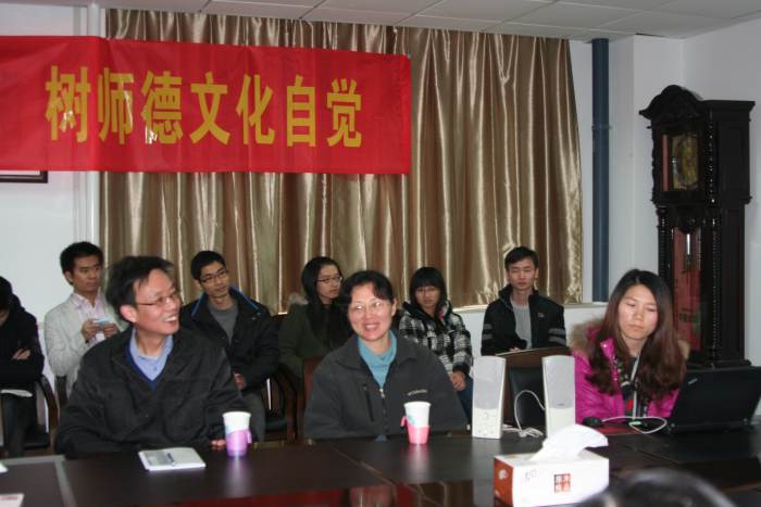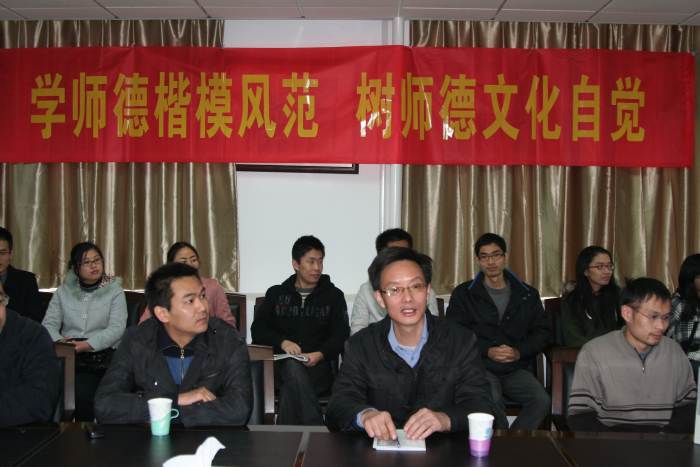 会议紧扣公司今年师德建设重点活动月“为人为师为学”的主题,一是通过观看《威廉希尔williamhill教书育人风采展》,让与会师生领略先进典型的风范,加深对先进典型卓越品质和思想内涵的感悟;二是通过图文并茂的PPT展示生物工程系教师的师德格言,全方位彰显其师德建设的新境界;三是展播部分教师授课的视频,让与会师生观摩体味“精彩一堂课”;四是与会师生围绕贯彻十七届六中全会精神和胡锦涛同志在清华大学百年校庆大会上提出的“四个必须”座谈心得体会,以进一步提高师德建设的文化自觉和文化自信。