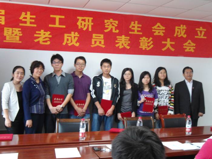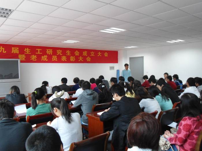 金秋时节,桂花飘香,是丰收的季节,也是升腾希望与理想的季节。2011年9月19日下午,第九届生工研究会成立大会暨老成员表彰大会在生工学科楼A1-208会议室隆重举行。公司党委书记缪昌美、副经理何冰芳教授、学院秘书吴玲燕应邀出席会议,并为上一届生工研会优秀骨干颁发荣誉证书和奖品。