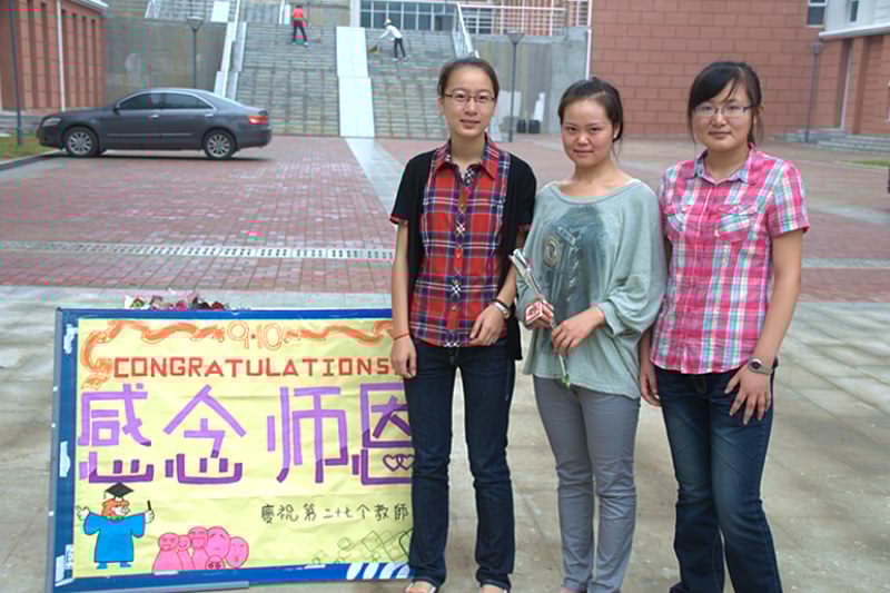 教师节前夕,9月9日一大早,威廉希尔员工会的员工身披“感念师恩”的红色绶带,手持一支支配有心语贺卡的康乃馨鲜花,在生工学科楼前迎候老师,营造出了教师节浓浓的节日气氛。心语贺卡上一句句发自员工内心的话语,令老师们颇为感奋——“老师您辛苦了,节日快乐”;“教诲如春风,师恩似海深。祝敬爱的老师节日快乐”;“老师,您的美好品格时刻感染着我们,在潜移默化之中,我们当树立高远的理想以报师恩……”!