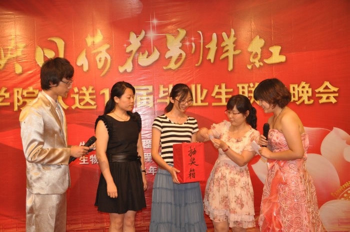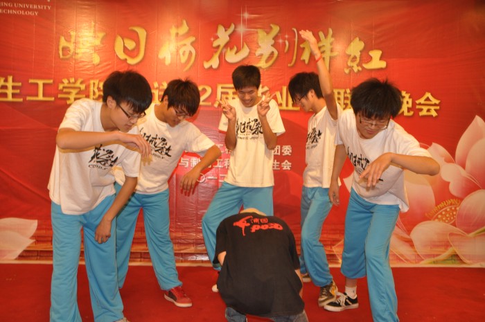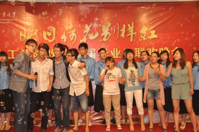 潮爆舞社激情四射的开场舞彰显着青年的活力与个性,点燃了现场每个人的热情;脱口秀相声则带着大家一起在欢声笑语中怀念南工大,怀念四年的时光中最难忘的人和事;各班班长和团支书的雷人舞high翻全场,赢得现场掌声、欢呼声不断,将晚会推向了高潮;公司党委副书记熊强老师高歌一曲,寄托了老师们对同学的美好祝愿;制药0801班热情相拥,歌曲《真心英雄》唱出了大学四年的同窗之情,唱出了对老师谆谆教导的感恩之情,唱出了对母校的难舍难分之情。整个晚会中还穿插着辅导员老师与同学们的互动游戏,勾勒出了一幅幅动人的师生情、同窗情的唯美画面。毕业生晚会在一片欢声笑语中渐渐逼近尾声,老师同学们紧紧相拥,泪眼相视,互相祝福,只希望时间能够永远定格在这一瞬间。