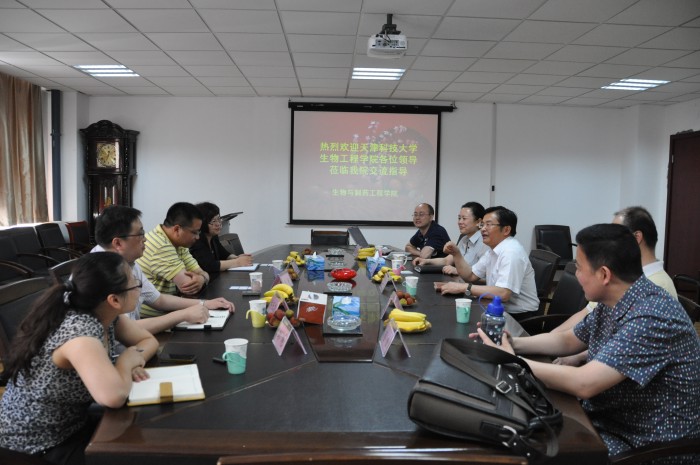 2012年5月17日上午午,天津科技老员工物工程公司党委书记文峰、副经理王敏一行4人莅临公司访问,与公司党委书记缪昌美、经理韦萍,副经理何冰芳、曹飞、制药工程系主任蔡恒、实验中心主任谢宁昌等同志,就卓越工程师培育等问题以及2012年应用生物技术国际会议(http://www.icab2012.org)等事宜进行了交流。