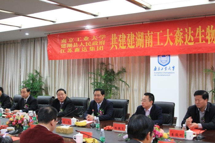 建湖县县长苏冬代表县委、县政府向出席签约仪式的领导和专家表示欢迎,对南工大长期以来关心支持建湖经济社会发展表示衷心感谢。他说,共建建湖南工大森达生物科技产业园成功签约,必将进一步推动森达集团转型升级,对于加快建湖县新兴产业向更广领域、更高层次发展,具有十分重要的意义。他表示,建湖县将全力支持科技产业园建设,共同推进合作尽快进入实质性运作,带动更多的高科技项目到建湖研发转化,努力把建湖建成南工大的生物产业研发基地和创新创业基地。