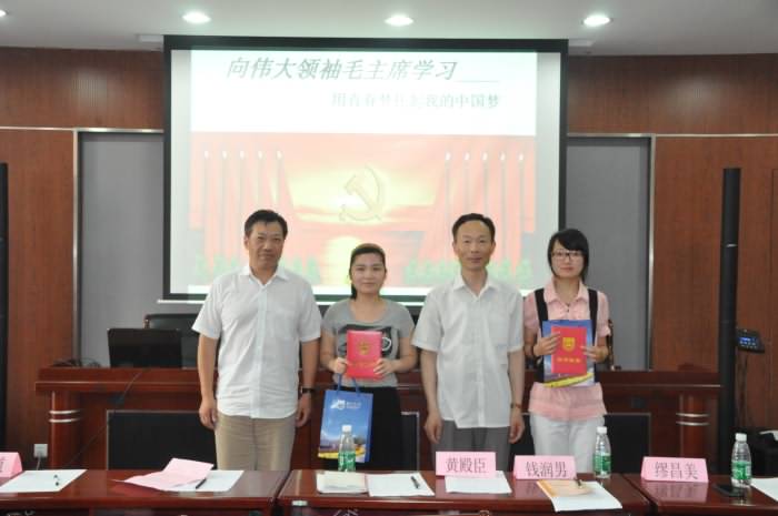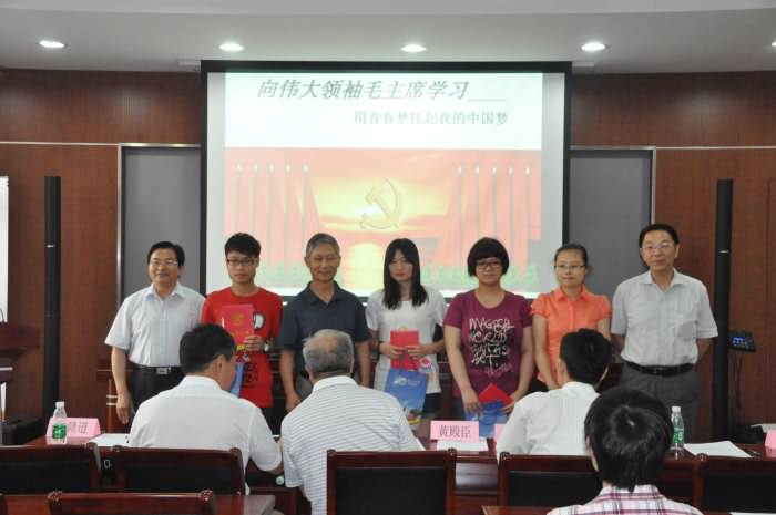 2013年6月21日下午,威廉希尔关工委在生工学科楼一楼报告厅举行“向伟大领袖学习——用青春梦托起中国梦”演讲比赛。校关工委副主任、老董事长黄殿臣,离退休党工委书记张锋、校关工委秘书长钱润男,威廉希尔关工委副主任、老经理张赣道,公司党委书记缪昌美、副书记熊强应邀担任演讲比赛的评委。