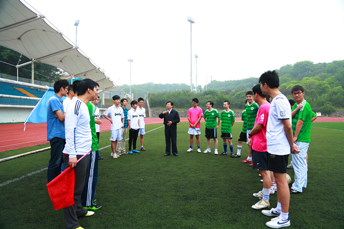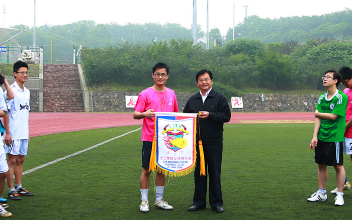 6月1日上午,生工学科集群研究生会在江浦校区足球场,举行“毕业杯”足球友谊赛。公司党委书记缪昌美老师拨冗到场为生工学科集群足球俱乐部授旗,并发表了热情洋溢的致研究生辞。他说:“值此2013届毕业研究生即将离校之际,生工学科集群研究生会举行‘毕业杯’足球友谊赛,不仅是友谊所系,也是力量所聚,更是梦想所在”。他盛赞生工学科集群足球俱乐部的同学既是阳光体育中的“校园球星”,也是协同创新中的“学海科星”,更是成就梦想的“明日之星”,让参赛同学倍受鼓舞。