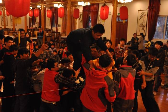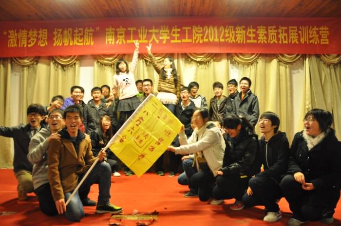 开营仪式以后,专业的素质拓展教练指导同学们随机分成若干小组,自行设计队旗、队标和队歌,开展了一系列有趣的活动。诸如“信息传递”,“水的故事”,“制胜七巧板”,“抱团打天下”等。在这些活动中,为同学们模拟了各种不同的“社会环境”,通过对同学们每个人的表现,来揭示当今社会职场中遇到的问题。同学们专心活动,兴致很高。尤其是最后的挑战项目:“抱团打天下”,更加反映了公司同学团结一心、众志成城的良好团队表现。由于其规则的约束,参训同学先后失败了七次,一次次的失败,一次次的挫折,非但没有磨灭参训同学的士气,反而更加燃起了参训同学“精诚所至,金石为开”的高昂斗志。男生为女生搭起通向胜利的桥梁,男生与男生则互相协作。那一刻,参训同学167颗真诚的心紧紧的相连在一起。在一声声“生工,加油!!!”的助威声中,所有参训同学突破重重困难的考验,圆满完成了训练任务。最后,同学们与辅导员班主任老师一同用《团结就是力量》的嘹亮歌声结束了为期一天的素质拓展训练。