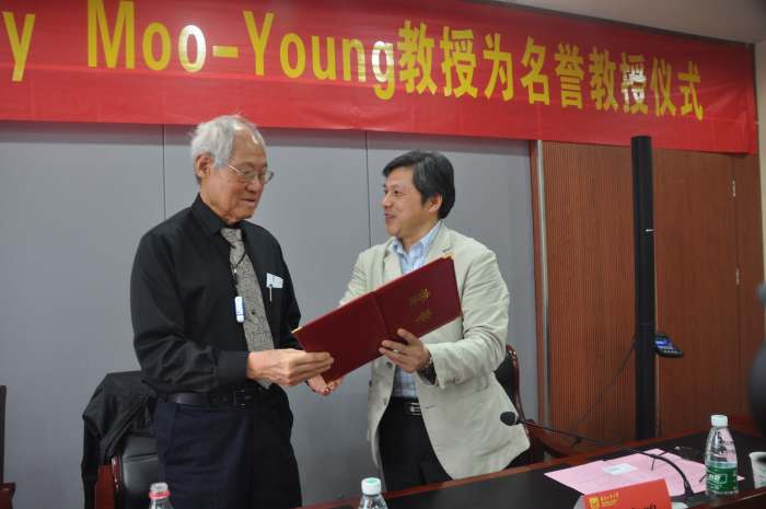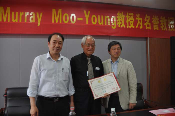 Murray Moo-Young,加拿大滑铁卢大学杰出的荣誉教授,国际生物化学工程学科的奠基者,国际环境生物技术学科的主要奠基人之一。主要从事生物反应器、生物修复和生物能源等方面的研究,发表学术论文340多篇,编辑出版专著教材12部,获专利9项。由于其杰出的学术贡献,Moo-Young教授当选为生物工程界最高荣誉的美国医学和生物工程研究院(FAIMBE)院士和加拿大学者最高荣誉的加拿大皇家学会(FRSC)院士。在全球多个工业和政府部门担任顾问,包括杜邦、辉瑞、联合国开发计划署、联合国粮农组织、美洲国家组织。长期担任多个国际著名学术刊物的主编或编辑,如《Biotechnology Advances》杂志的主编和《Comprehensive Biotechnology》 2011年第二版的主编。