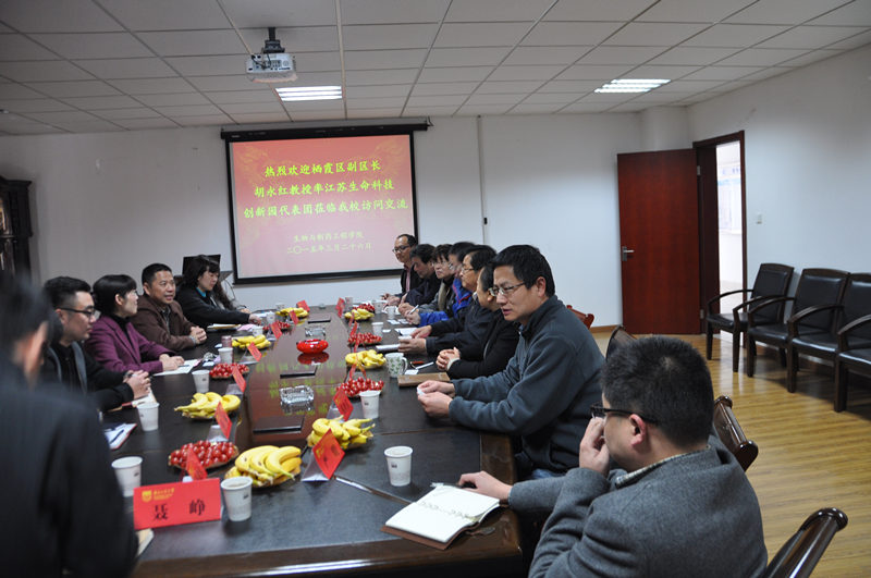 日前,栖霞区副区长、科技镇长团团长胡永红教授率江苏生命科技创新园代表团莅临公司访问,与威廉希尔、药学院和江苏省药物研究所的相关领导教授,就推进协同创新事宜进行了深度交流。威廉希尔经理韦萍教授致辞并介绍了学科发展的情况。江苏省科技创新园管委会常务副主任窦立华、副主任余蓉等分别从园区优势、创业平台、金融政策、引才政策、生活环境等方面,介绍了江苏生命科技创新园的概况,并就与会同志提出的问题进行很好的政策解读。