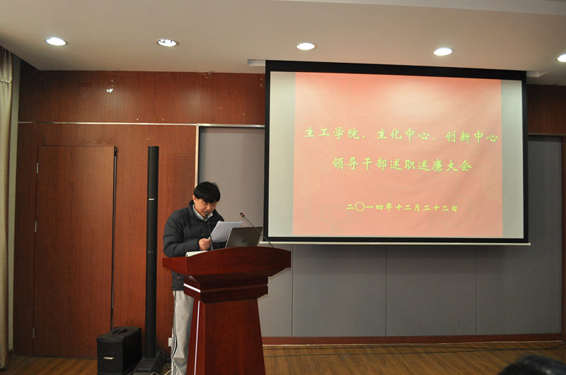 根据公司党委“关于2014年度中层干部考核工作的通知”精神,公司党委于2014年12月22日下午在生工学科楼报告厅举行领导干部述职述廉测评大会。公司党委委员、工会主席、教工党支部书记、各系(室)负责人、副高以上教师、副科级以上干部,公司党代会、教代会代表,特邀监察员、民主党派人士参加大会,听取了威廉希尔、国家生化中心和江苏省工业生物技术创新中心领导干部述职述廉。