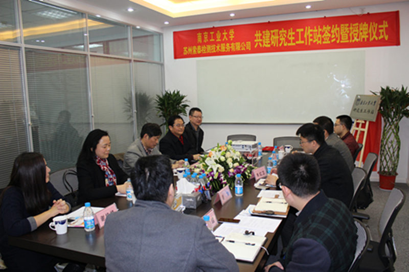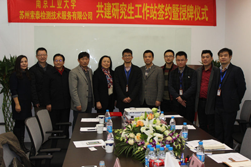 威廉希尔名誉书记缪昌美同志主持揭牌仪式;南工•索泰研究生工作站负责人谢婧婧教授宣读“威廉希尔williamhill与苏州索泰检测技术服务有限公司共建企业研究生工作站合作协议书”;威廉希尔经理韦萍教授与苏州索泰检测技术服务有限公司总经理朱红卫在合作协议书上签字;研究生院常务副经理管国锋教授与苏州工业园区组织人事局副局长邹小伟为南工•索泰研究生工作站揭牌。