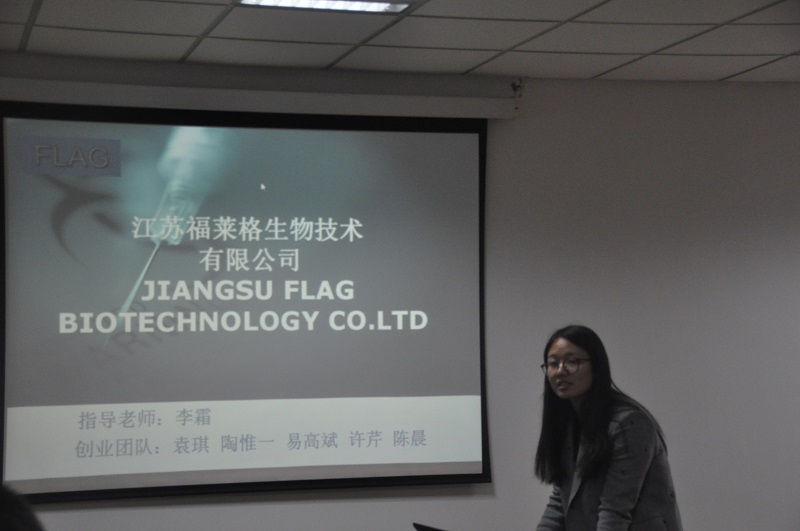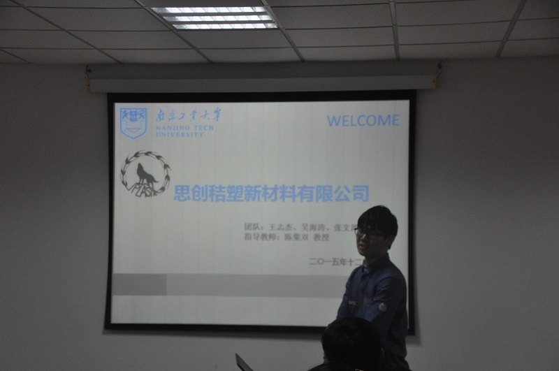 本次共有三组选手参加预答辩,首先出场的是“江苏福莱格生物技术有限公司”代表队,产品是安全即用型过氧乙酸消毒剂,选手通过阐述设计理念、产品比较、后期发展等论述了产品优势。接着出场的是“思创秸塑新材料有限公司”代表队,产品是以农作物秸秆为主要原材料生产改性秸秆粉、秸塑母料和秸塑地板等,形成秸秆资源化处理的方案,开辟了秸秆全价高值化利用的新途径。最后出场的是“江苏格锐生物技术有限公司”代表队,产品是以较低成本富马酸制备高收益,可运用于医药、食品、工业等领域的产品。各位老师对选手的现场表现和PPT制作、以及产品的创新特色、工艺流程、市场潜力、公司状况等进行了点评。